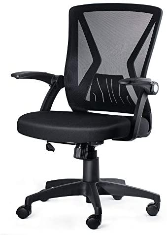 • SINOVO Mid Back Mesh Office Chair Swivel Ergonomic Black Mesh Computer Chair Flip Up Arms With Lumbar Support Adjustable Height Task Chair