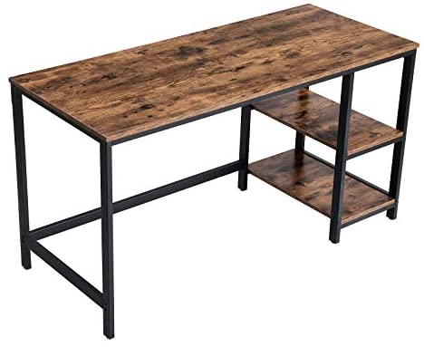• VASAGLE ALINRU Computer Desk, 55.1-Inch Long Home Office Desk for Study, Writing Desk with 2 Shelves on Left or Right, Steel Frame, Industrial, Rustic Brown and Black ULWD55X