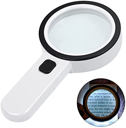 • Magnifying Glass with Light, 30X Handheld Large Magnifying Glass 12 LED Illuminated Lighted Magnifier for Macular Degeneration, Seniors Reading, Soldering, Inspection, Coins, Jewelry, Exploring(White)