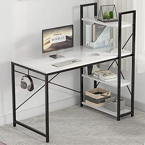 • Molblly Computer Desk with Shelves Storage 47 INCH Study Writing Desk for Home Office desks,Modern Simple Style Steel Frame Wood for PC Table with Bookshelfs