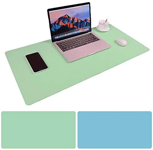 • Large Desk Pad Mouse Pad, Aisakoc 35.4”x15.75” Non-Slip PU Leather Desk Mouse Pad Waterproof, Dual-Side Use Desk Gaming Writing Mat for Office Home (Mint Green and Sky Blue)