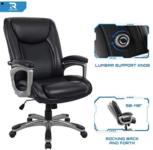 • RIMIKING Ergonomic Memory Foam Executive Office Chair – Adjustable Height Built-in Lumbar Support Tilt Angle Computer Desk Chair, Swivel Thick Padded for Comfort