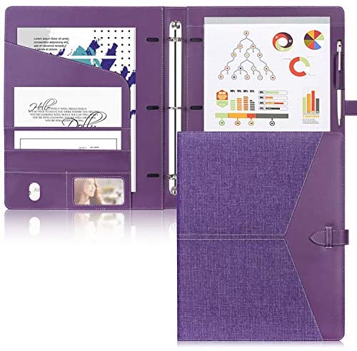 • Toplive Padfolio 3 Ring Binder (1” Round Ring) Business Portfolio Folder for Interview, Conference and Presentation, Purple