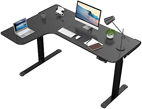 • DESIGNA L Shaped Electric Standing Desk, 61inches Height Adjustable Corner Home Office Desk, Modern Workstation with Free Large Mouse Pad, Black