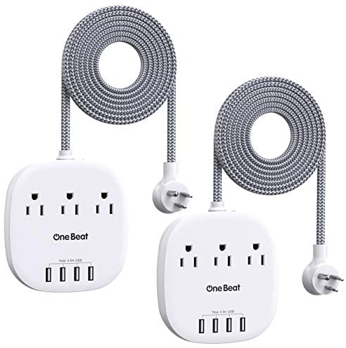 • Power Strip 2 Pack, Desktop Charging Station with 3 Outlet 4 USB Ports 4.5A, Flat Plug, 5 ft Long Braided Extension Cord for Cruise Ship Travel Home Office, ETL Listed, White
