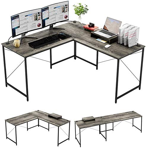 • Bestier L Shaped Industrial Desk 95.2 Inch Reversible Corner Computer Desk or 2 Person Long Table for Home Office Large U Shaped Gaming Workstation with Monitor Stand and 3 Cable Holes, Gray