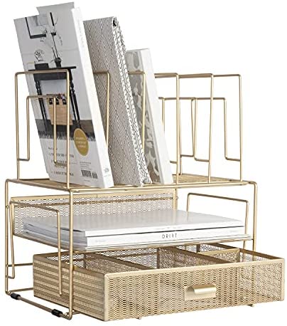 • Blu Monaco Workspace Gold Desk Organizers, Storage and Accessories Desktop Rack File Organizer with File Holder Sorters and Drawer for Office Supplies, Paper, Device and Folder