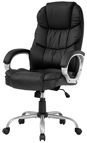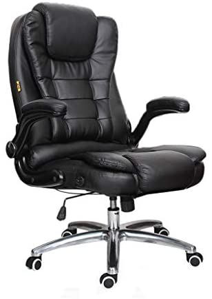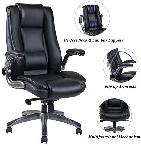 • REFICCER Office Chair High Back Leather Executive Computer Desk Chair – Adjustable Tilt Angle and Flip-up Arms Swivel Chair Thick Padding for Comfort and Ergonomic Design for Lumbar Support, Black