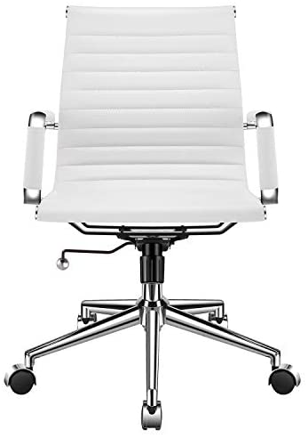 • LUXMOD White Office Chair Adjustable Swivel Chair in Durable Vegan Leather, Mid Back Office Chair with Armrest, Ergonomic Desk Chair for Extra Back & Lumbar Support, Modern Executive Chair White