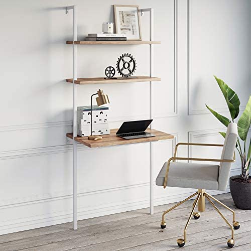 • Nathan James Theo 2-Shelf Industrial Wall Mount Ladder, Small Computer or Writing Desk, Rustic Oak/White
