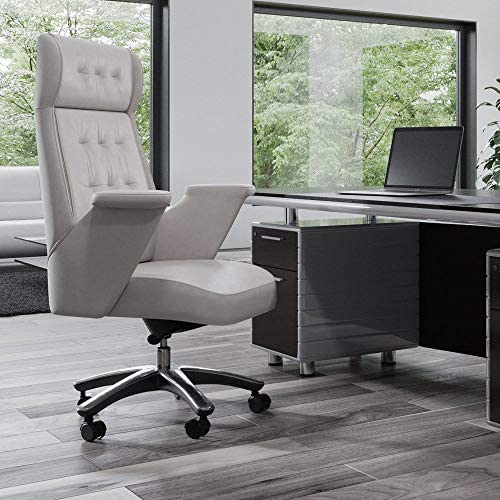 • Rockefeller Genuine Leather Aluminum Base High Back Executive Chair – White