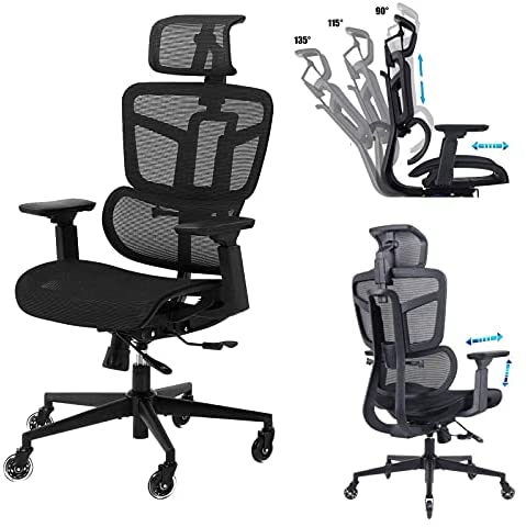• Ergonomic Office Chair, High Back Mesh Desk Chair Big Computer Chair with 4D Armrests Adjustable Lumbar Support Headrest Swivel Executive Rolling Task Chair for Conference Home Office Adults