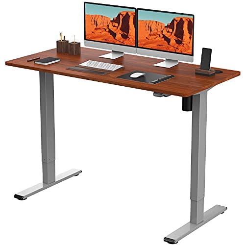 • Flexispot EG1 Standing Desk Height Adjustable Desk Electric Sit Stand Up Desk with Splice Board Home Office Desks 55 x 28 Inches Vici (Gray Frame + Mahogany Top)