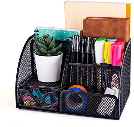 • MDHAND Office Desk Organizer and Accessories, Mesh Desk Organizer with 6 Compartments + Drawer