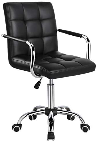 • Yaheetech Desk Chair – Office Chair with Arms/Wheels for Teens/Students Swivel Faux Leather Home Computer Black