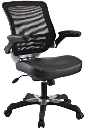 • Modway Edge Mesh Back and White Vinyl Seat Office Chair With Flip-Up Arms – Computer Desks in Black