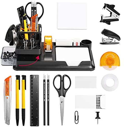 • Deli 15 Pcs Office Supplies Kit with Desk Organizer, Desk Accessories Set with Staple, Sharpener, Scissors, Staple Remover, Binder Clips