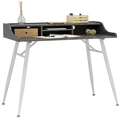 • Calico Designs Woodford 45” Wide Modern, Secretary, Writing, Desk with Low Storage Hutch and Whtie Metal Tapered Legs in Marbled Dark Grey, White