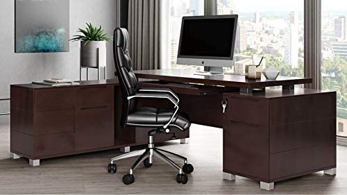 • Dark Wood Finish Ford Executive Modern Desk with Filing Cabinets – Left Return