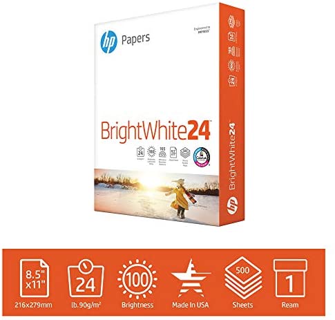 • HP Printer Paper BrightWhite 24lb, 8.5x 11, 1 Ream, 500 Sheets, Made in USA From Forest Stewardship Council (FSC) Certified Resources, 100 Bright, Engineered for HP Compatibility, 203000R