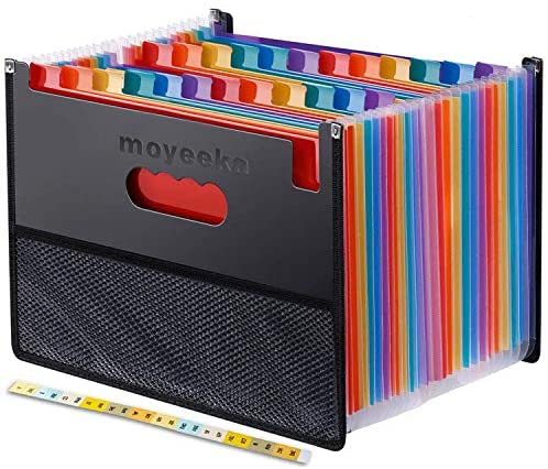• 24 Pocket Expanding File Folder with Cloth Edge Wrap, Letter Size Organizer Expandable Accordion A4 Files Bag
