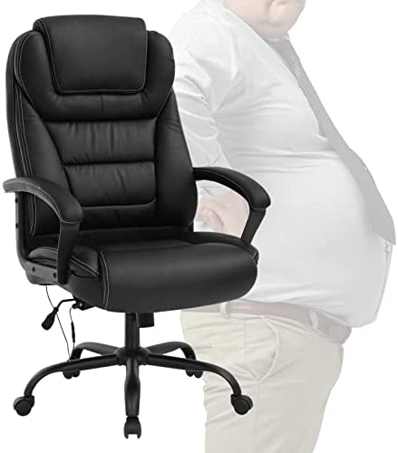 • Executive Office Chair -500lbs Big and Tall Office Chair PU Leather Computer Chair with Spring Cushion, Armrest & Lumbar Support Ergonomic Desk Chair for Heavy People Men Swivel Task Chair, Black