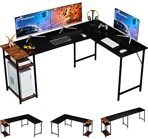 • GreenForest L Shaped Desk Reversible with Storage, 94.4 Inch 2-Person Long Desk Computer Gaming Office Desk, Writing Study Corner Desk for Home Office, Black/Brown