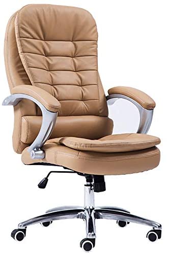 • LJFYXZ Home Office Desk Chair Home Computer Chair Double Layer Design High Back Large Seat PU Reclining Swivel Chair Fixed armrest Bearing Weight 150kg (Color : Khaki)