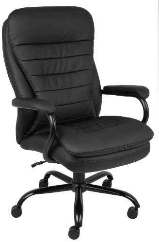 • Boss Office Products Heavy Duty Double Plush LeatherPlus Chair with 350lbs Weight Capacity in Black