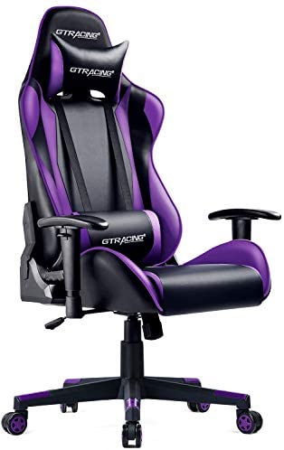 • GTRACING Gaming Chair Racing Office Computer Game Chair Ergonomic Backrest and Seat Height Adjustment Recliner Swivel Rocker with Headrest and Lumbar Pillow E-Sports Chair (Purple)