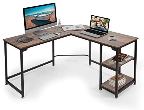 • Tangkula Industrial L-Shaped Computer Desk, Space-Saving Corner Desk with Storage Bookshelves & Adjustable Foot Pads, Home Office Desk Study Workstation for Home Office (Walnut)
