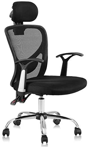 • Giantex High Back Mesh Office Chair with Adjustable Headrest and Tilt-Down Backrest, Ergonomic Breathable Computer Desk Chair for Home Office, Executive Mesh Task Chair (Black)