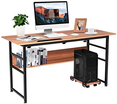 • Tangkula 55″ Computer Desk, Drafting Desk w/Storage Shelf & CPU Stand, Craft Workstation w/Tiltable Desktop for Artist, Home Office Desk (Walnut)