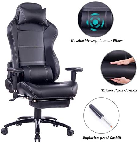 • HEALGEN Reclining Gaming Chair with Adjustable Massage Lumbar Pillow and Footrest- Memory Foam PC Computer Racing Chair – Ergonomic High-Back Office Desk Chair GM005 (8263BLACK)