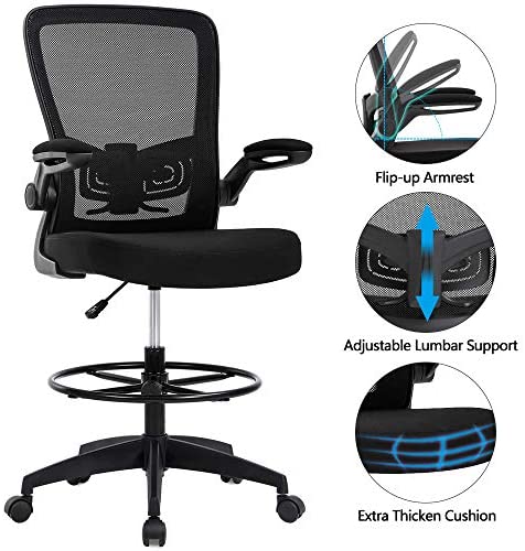 • Drafting Chair Tall Office Chair Ergonomic Computer Desk Mid Back Mesh Chair with Lumbar Support & Foot Ring Height Adjustable Rolling Swivel Drafting Stool Task Executive Chair for Standing Desk