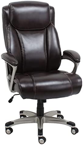 • Amazon Basics Big & Tall Executive Computer Desk Chair with Lumbar Support, Adjustable Height and Tilt, 350Lb Capacity, Brown with Pewter Finish