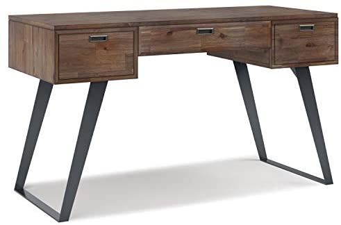 • SIMPLIHOME Keaton SOLID WOOD and Metal Industrial Contemporary 54 inch Wide Home Office Desk, Writing Table, Workstation, Study Table Furniture in Rustic Natural Aged Brown with 2 Drawerss