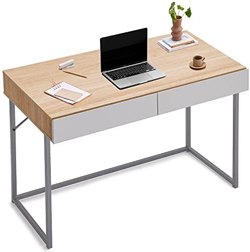 • Harmati Computer Desk with Drawers for Storage – 40 Inch Small Home Office Desks for Small Spaces, Modern Simple Writing Study Desk for Students Bedroom (Oak/Light Grey)
