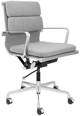 • 2xhome Mid Century Office Chair with Arms Wheels Modern Desk Chair Ergonomic Executive Chair Mid Back PU Leather Arm Rest Tilt Adjustable Height Swivel Task Computer Conference Room (Black)…