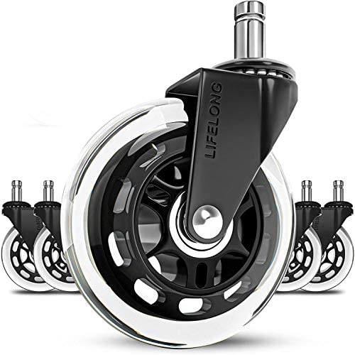 • Office Chair Wheels Black Replacement Rubber Chair casters for Hardwood Floors and Carpet, Set of 5, Heavy Duty Office Chair casters for Chairs to Replace Chair mats – Universal fit