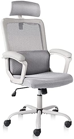 Ergonomic Office Chair, KERDOM Home Desk Chair, Comfy Breathable Mesh Task Chair, High Back Computer Chair with Headrest and 3D Armrests, Adjustable Height Home Gaming Chair (White-S)