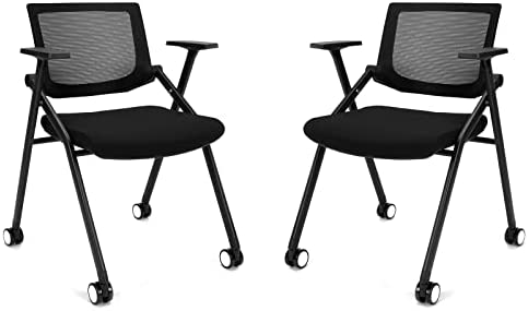 • [2 Pack] Stackable Conference Room Chairs with Wheels and Paddle – Ergonomic Mesh Back and Arms for Meeting & Home Office Desk Folding Chairs 2 pcs (Black)