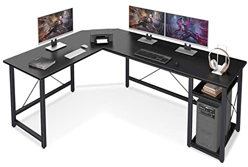 • Coleshome L Shaped Computer Desk 66″ with Storage Shelves Gaming L Desk Workstation for Home Office Wood & Metal, Black