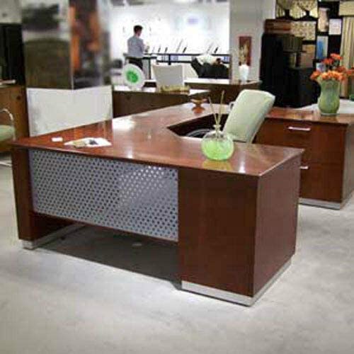 • New Modern U-Shaped Executive Desk with Metal and Wood Designer Office Furniture