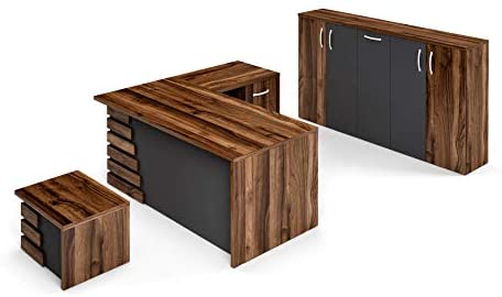 • Casa Mare 79″ Executive Office Furniture Set | Made of Wood | Home Office Modern Business Suite | 3-Piece Including L Shaped Desk with Drawers, Coffee Table and Large Storage Cabinet | Brown & Black