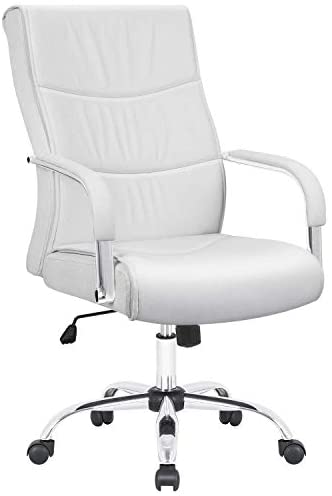 • Homall Office Chair High Back Computer Chair Ergonomic Desk Chair, PU Leather Adjustable Height Modern Executive Swivel Task Chair with Padded Armrests and Lumbar Support (White)