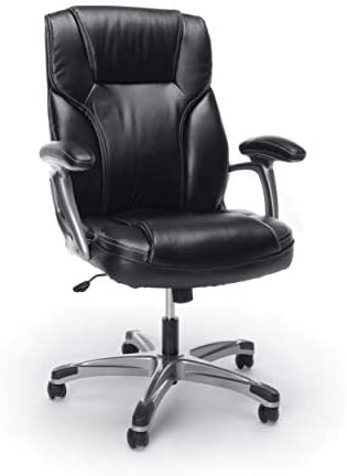• Essentials High-Back Leather Executive Office/Computer Chair with Arms – Ergonomic Swivel Chair (ESS-6030-BLK)