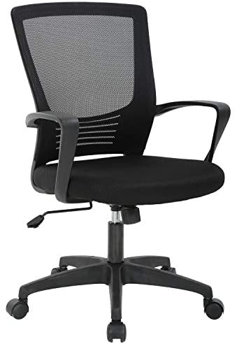 Office Chair Ergonomic Chair Mid Back Mesh Desk Chair Adjustable Height Swivel Mesh Chair Computer Chair with Armrest Lumbar Support (Black)