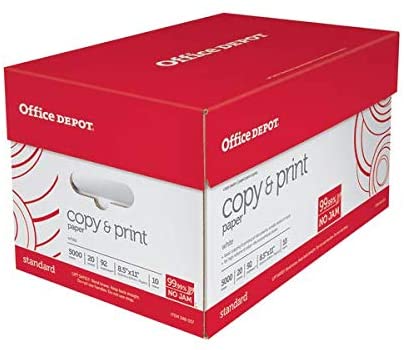 • Office Depot White Copy Paper, 8 1/2in. x 11in., 20 Lb., 84 Brightness, Case Of 10 Reams