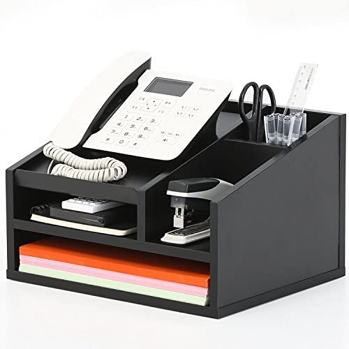 • FITUEYES Wood Office Suppies Desk Organizer 5 Compartments with Letter Tray Phone Stand Pen Pencil Holder